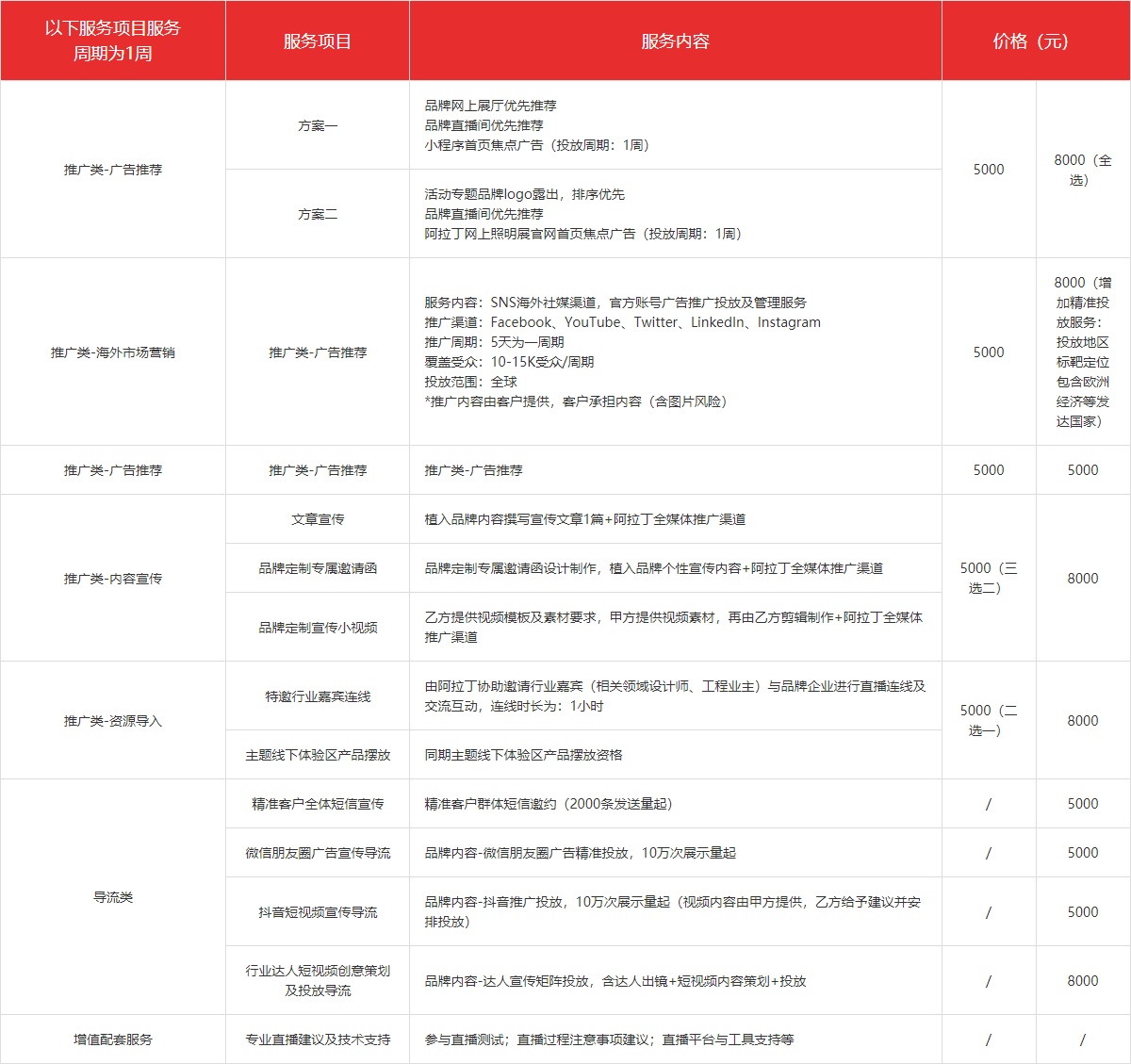 | 海外SNS社媒推廣服務(wù):官方賬號(hào)廣告推廣投放及管理,覆蓋受眾:10-15K人次(投放周期:1周) |