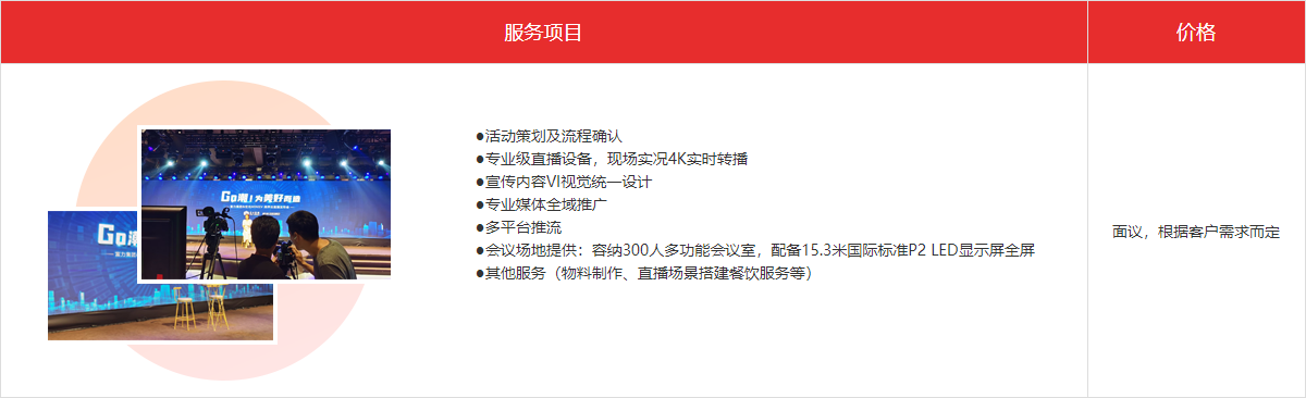 | 增值配套服務(wù) | 專業(yè)直播建議及技術(shù)支持 | 參與直播測(cè)試;直播過程注意事項(xiàng)建議;直播平臺(tái)與工具支持等 |